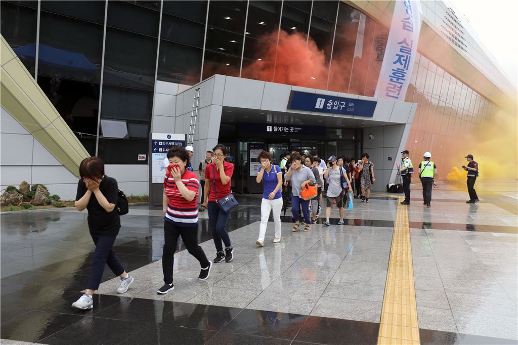 [아시아경제 박종일 기자] 강남구(구청장 신연희)는 2017년 을지연습 실제훈련으로 23일 ‘수서 고속철도(SRT) 수서역사 피폭에 따른 긴급구조종합훈련’을 실시했다.북한의 장사정포에 의한 수서역사 피폭으로 대형화재 및 다수의 사상자 발생을 가정, 긴급구조 및 재난대응훈련이 진행됐다.박종일 기자 dream@asiae.co.kr<ⓒ세계를 보는 창 경제를 보는 눈, 아시아경제(www.asiae.co.kr) 무단전재 배포금지>