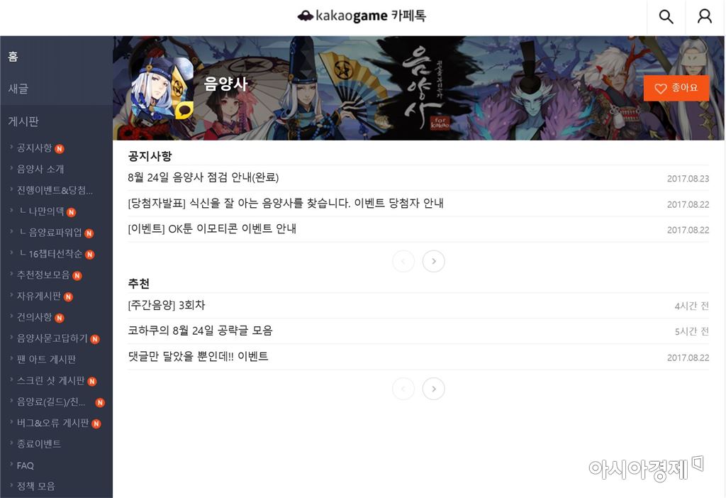 음양사에 처음 적용된 카카오의 자체 게임 커뮤니티 '카페톡'