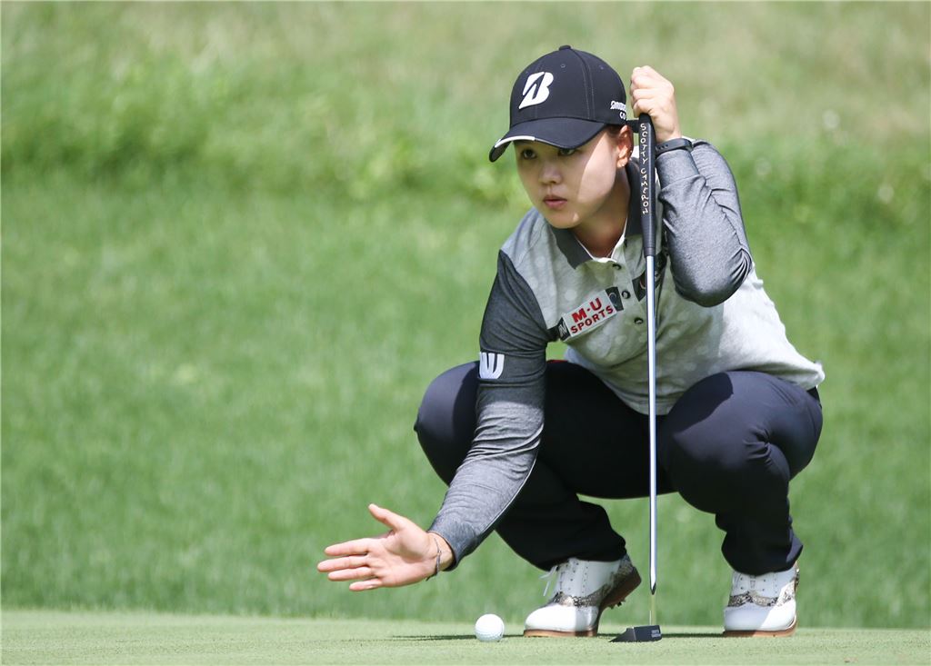 최유림이 하이원리조트여자오픈 둘째날 10홀에서 신중하게 퍼팅 라인을 읽고 있다. 사진=KLPGA