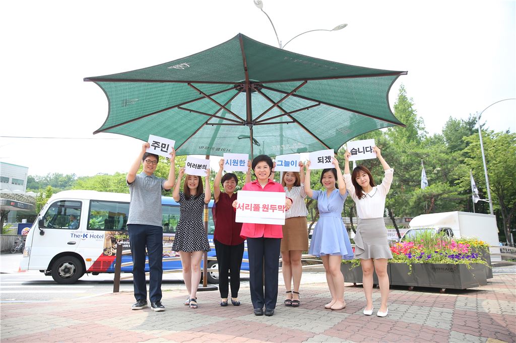 구는 주민이 자외선에 노출되는 것을 예방하기 위해 올해 ‘서리풀 원두막’을 지역 내 교통섬, 횡단보도 등에 120개 설치해 운영하고 있다. 지름 3~5m, 높이 3~3.5m크기로 한 번에 성인 20명이 이용할 수 있는 ‘서리풀 원두막’은 교통신호를 기다리며 뙤약볕을 버텨야 했던 주민들에게 시원한 그늘을 제공했다. ‘서리풀 원두막’의 편리함에 구 SNS 등을 통해 2000여개가 넘는 주민들의 칭찬 댓글이 달렸고, 전국 지자체와 각종 기업들도 벤치마킹을 위해 지속적으로 구를 방문하고 있다. 조은희 구청장은 “서리풀 원두막이 국제적으로 인정을 받게 된 것은 45만 주민의 믿음과 성원이 있었기에 가능했던 일”이라며 “무더운 여름 주민께 시원한 그늘을 선사한 서리풀 원두막처럼 앞으로도 더욱 살기 좋은 서초를 만들기 위해 노력할 것”이라고 말했다. 박종일 기자 dream@asiae.co.kr<ⓒ세계를 보는 창 경제를 보는 눈, 아시아경제(www.asiae.co.kr) 무단전재 배포금지>