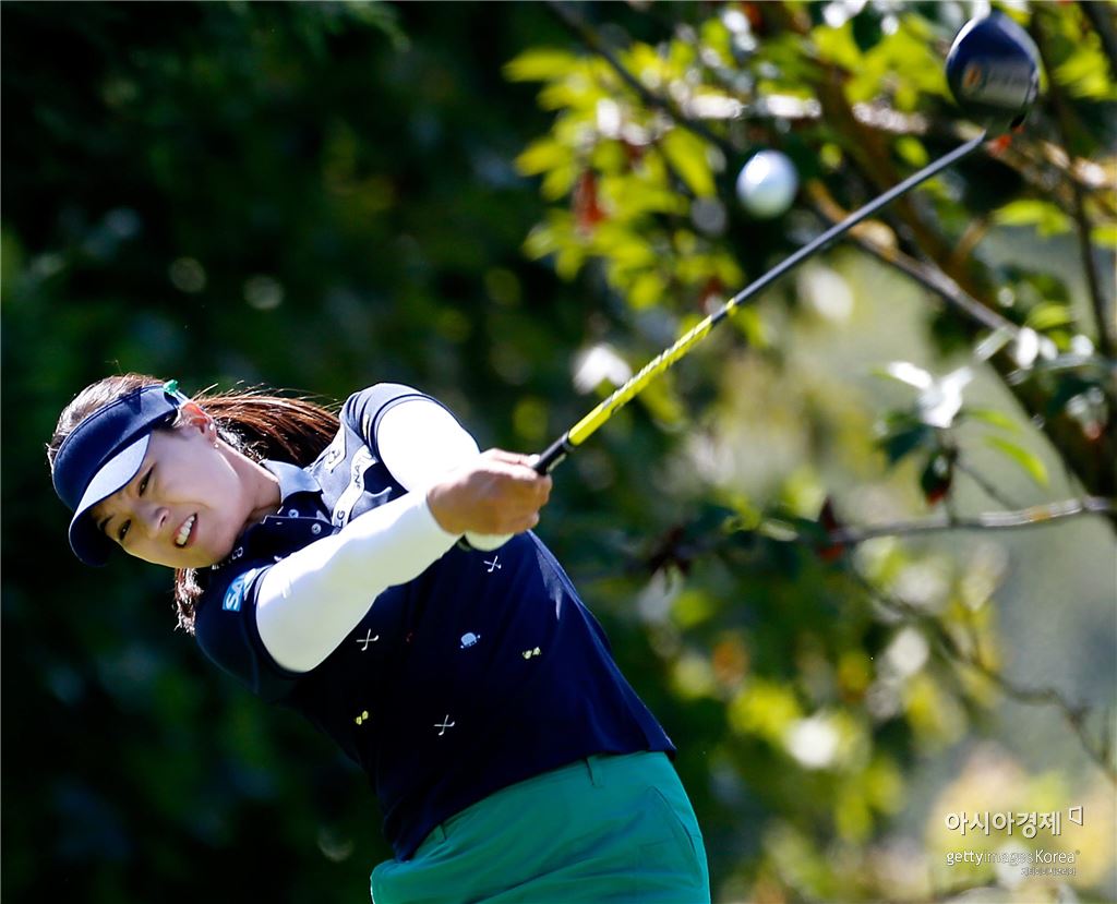 전인지가 포틀랜드클래식 첫날 5번홀에서 티 샷을 날리고 있다. 포틀랜드(美 오리건주)=Getty images/멀티비츠