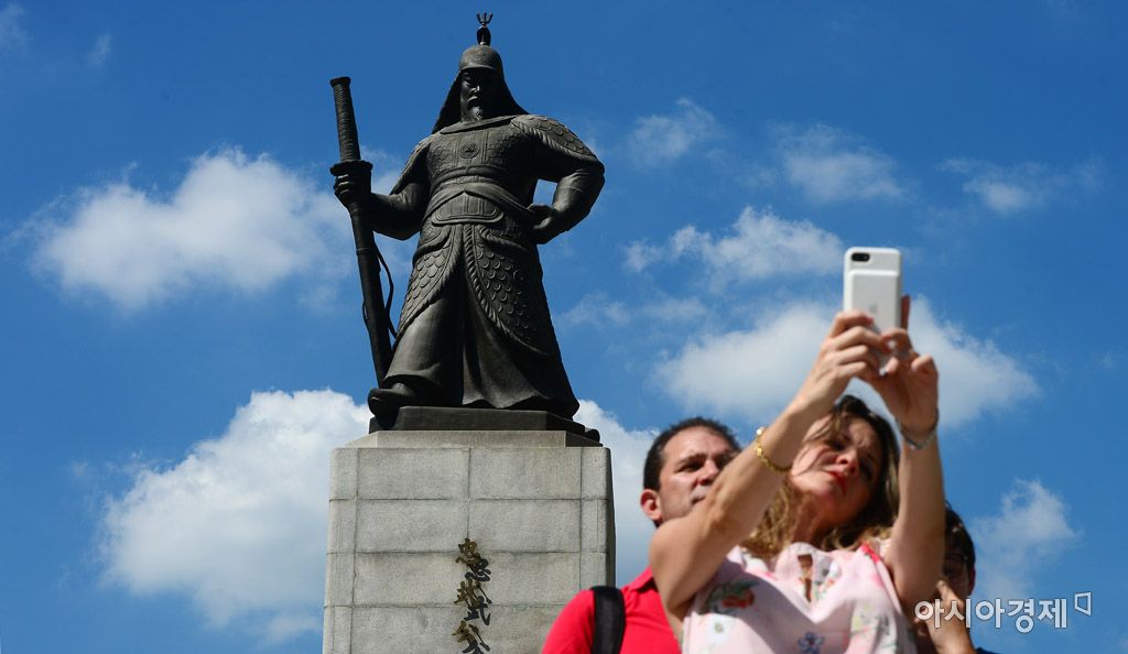 [아시아경제 문호남 기자] 맑고 청명한 초가을 날씨를 보인 1일 서울 종로구 광화문광장 이순신동상 앞에서 외국인 관광객들이 기념촬영을 하고 있다.문호남 기자 munonam@asiae.co.kr<ⓒ세계를 보는 창 경제를 보는 눈, 아시아경제(www.asiae.co.kr) 무단전재 배포금지>