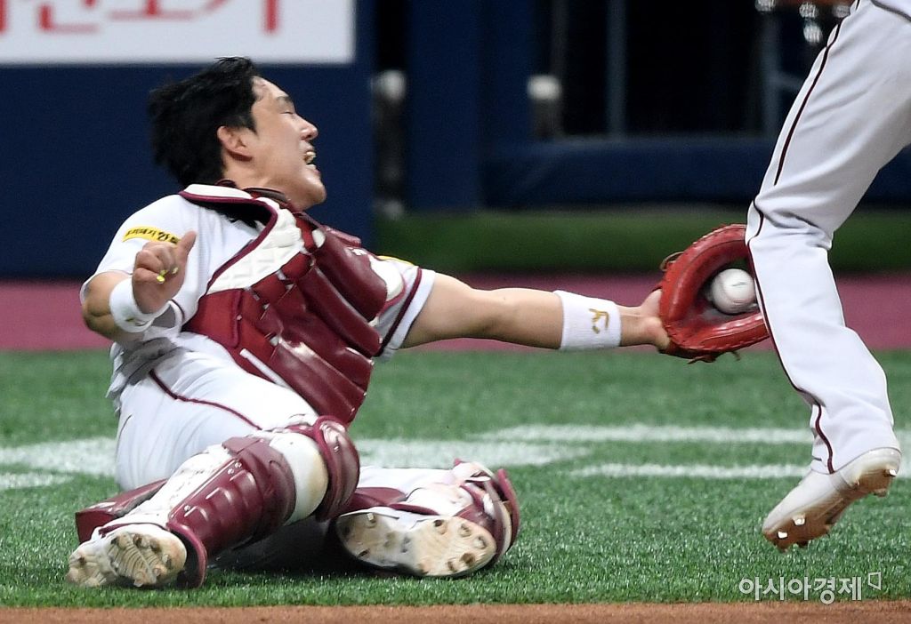 [고척돔=아시아경제 김현민 기자]프로야구 KIA 타이거즈와 넥센 히어로즈의 2017 KBO리그 경기가 2일 서울 고척돔에서 열렸다. 5회초 무사 2루에서 넥센 박동원 포수가 KIA 김선빈의 파울 타구를 잡아내고 있다. 김현민 기자 kimhyun81@asiae.co.kr<ⓒ세계를 보는 창 경제를 보는 눈, 아시아경제(www.asiae.co.kr) 무단전재 배포금지>