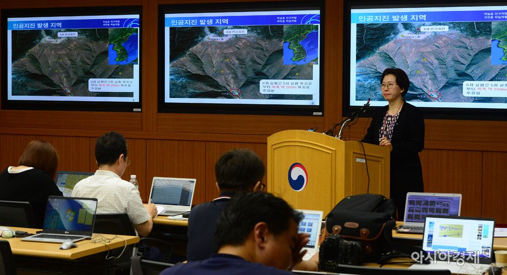 [아시아경제 문호남 기자] 이미선 기상청 지진화산센터장이 3일 서울 동작구 대방동 기상청에서 북한 함경북도 길주군 풍계리에서 발생한 인공지진 관련 브리핑을 하고 있다.문호남 기자 munonam@asiae.co.kr<ⓒ세계를 보는 창 경제를 보는 눈, 아시아경제(www.asiae.co.kr) 무단전재 배포금지>