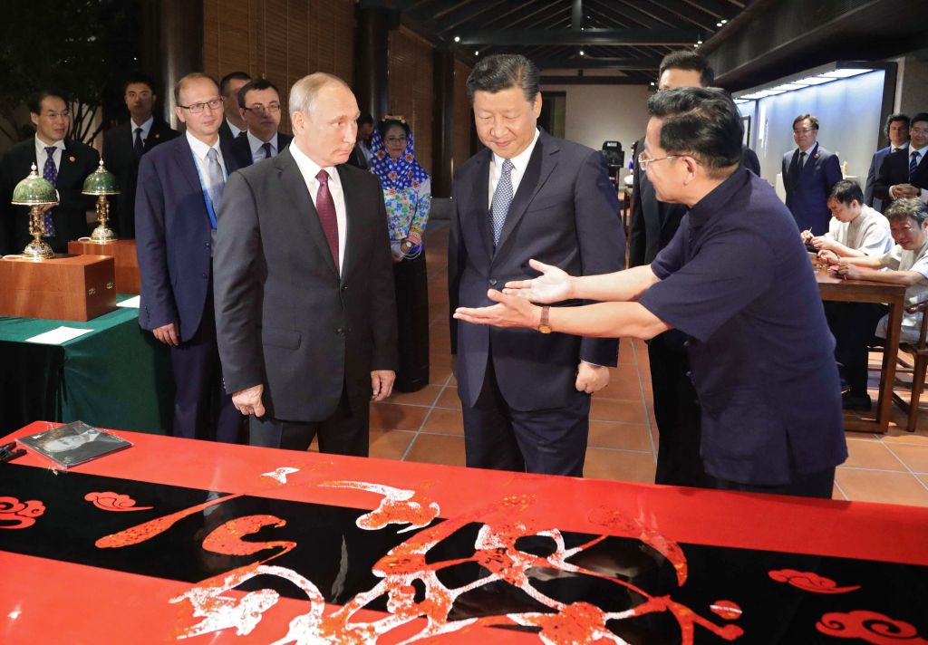 두 정상은 이날 회담을 한 후 함께 공연을 관람하고 중국 문화에 대한 전시물을 감상했다.[이미지출처=EPA연합뉴스]