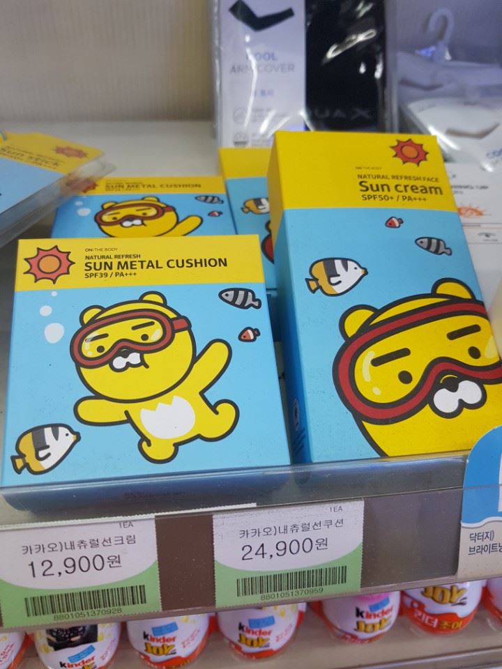 한 편의점에 진열된 선쿠션, 선크림 제품.(사진=조호윤 기자)