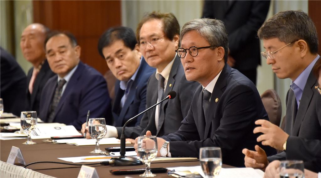 [아시아경제(대전) 정일웅 기자] 산림청은 5일 서울 코리아나호텔에서 ‘2017년 산림·임업 단체장 소통 간담회’를 개최했다. 간담회는 국내 산림·임업 분야 단체장 등이 한자리에 모여 새정부의 산림정책 방향을 공유하고 이 분야의 민간부문 활성화와 거버넌스 구축을 통한 일자리 창출 방안을 논의하는 시간을 가졌다. 김재현 산림청장(오른쪽 두 번째)이 산림·임업 분야 대표자들과 함께 일자리 창출 방안을 논의하고 있다. 산림청 제공대전=정일웅 기자 jiw3061@asiae.co.kr<ⓒ세계를 보는 창 경제를 보는 눈, 아시아경제(www.asiae.co.kr) 무단전재 배포금지>정일웅 기자 jiw3061@asiae.co.kr<ⓒ아시아 대표 석간 '아시아경제' (www.newsva.co.kr) 무단전재 배포금지>