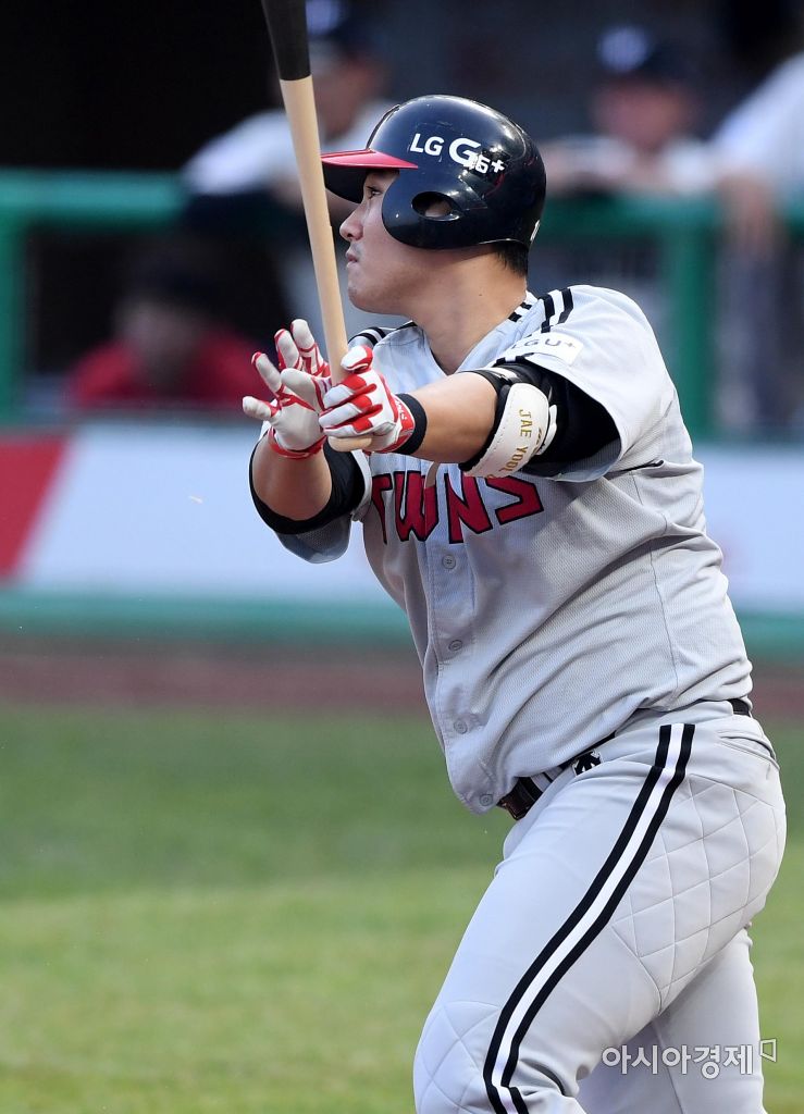 LG는 7회까지 1-3으로 끌려갔다. 2회말 양석환의 1점 홈런(11호)으로 먼저 점수를 냈으나 5회초 KIA 로저 버나디나(23호)에게 역전 3점 홈런을 허용했다. LG는 팻 딘이 마운드를 내려간 후 KIA 불펜을 상대로 동점을 만들었다. KIA 두 번째 투수는 8회말 마운드에 오른 김윤동. LG는 1사 후 문선재의 안타와 안익훈의 볼넷으로 1사 1, 2루 기회를 잡았다. 타석에는 통산 2199안타를 기록한 박용택. KIA는 김윤동에 이어 왼손 고효준을 세 번째 투수로 마운드에 올렸다. 하지만 고효준이 박용택에게 볼넷을 허용해 상황은 1사 만루로 바뀌었다.고효준이 박용택만 상대하고 마운드를 내려갔고 김세현이 마운드에 올랐다. 정성훈이 김세현을 상대로 우중간에 떨어지는 동점 적시타를 쳤다. LG는 계속된 1사 1, 3루에서 역전까지는 가지 못 했다. 양석환이 3루 주자 박용택이 홈으로 들어오기에는 짧은 외야 뜬공을 날렸고 대타 김재율은 3구삼진으로 물러났다. 8회말 역전타를 터뜨리지 못한 김재율은 10회말 더 극적인 순간에서 끝내기 안타를 쳤다. LG는 연장 10회말 선두타자 안익훈이 중견수 앞으로 빠져나가는 안타를 치고 나가면서 기회를 만들었다. 안익훈은 내야 땅볼과 KIA 포수 김민식의 실책으로 3루까지 갔다. 2사 1, 3루에서 김재율이 김세현의 2구를 공략해 3루수 옆으로 빠져나가는 적시타를 쳐 경기를 마무리했다. 박병희 기자 nut@asiae.co.kr<ⓒ세계를 보는 창 경제를 보는 눈, 아시아경제(www.asiae.co.kr) 무단전재 배포금지>