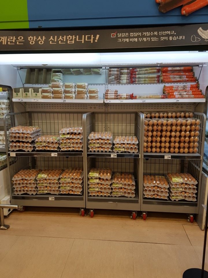 지난 2일 롯데마트 서울역점 계란 매대. 찾는 소비자가 많지 않아 계란이 수북히 쌓여있다.