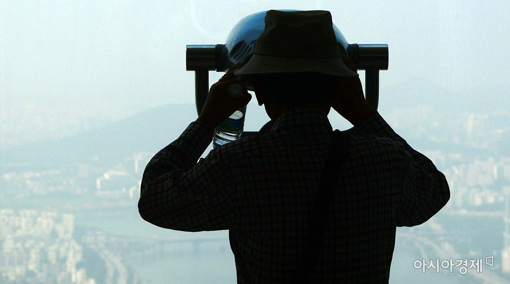 [아시아경제 문호남 기자] 미세먼지 농도가 한때 '나쁨' 수준을 보인 8일 서울 송파구 롯데월드타워에서 한 시민이 흐린 도심을 바라보고 있다.문호남 기자 munonam@asiae.co.kr<ⓒ세계를 보는 창 경제를 보는 눈, 아시아경제(www.asiae.co.kr) 무단전재 배포금지>