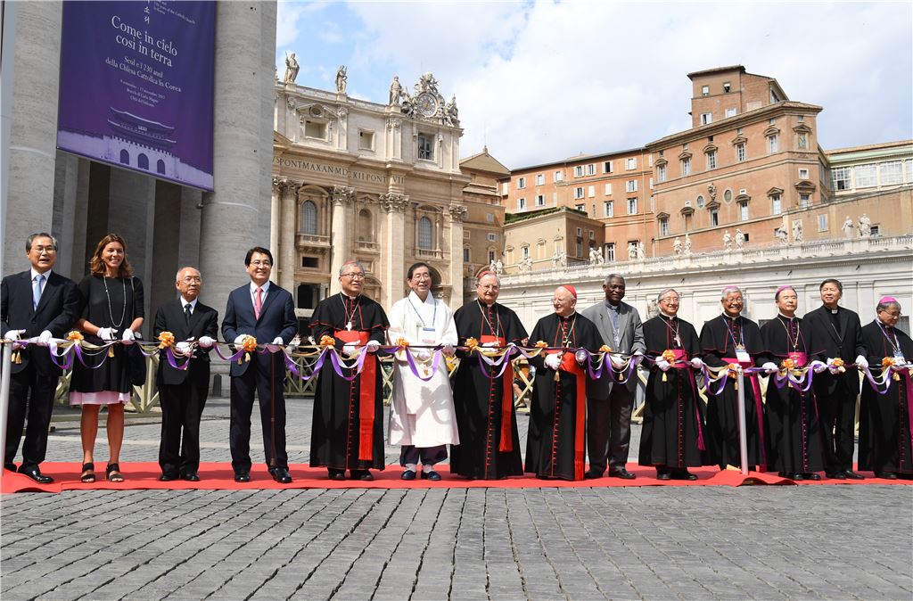 박원순 서울시장이 9일(현지시간) 바티칸박물관에서 진행된 '땅에서도 이루어지소서! 한국 천주교회 230년 그리고 서울' 특별전의 테이프 커팅식에 참석하고 있다.