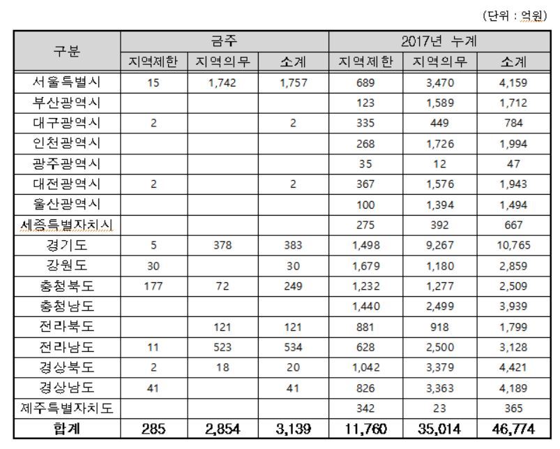 지역별 지역제한·지역의무공동도급 현황자료. 조달청 제공