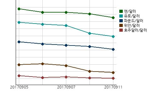 9월 11일 12시 현재 국제시장환율은 달러/유로 환율은 전일대비 0.09%(0.0011달러) 오른 1유로에 1.2034달러이고, 달러/영국 파운드 환율은 전일대비 0.10%(0.0014달러) 오른 1파운드에 1.3198달러이고, 중국 위안/달러 환율은 전일대비 0.24%(0.0156위안) 내린 1달러에 6.4777위안이고, 일본 엔/달러 환율은 전일대비 0.11%(0.1200엔) 내린 1달러에 107.8400엔이다아경봇 기자 r2@asiae.co.kr<ⓒ세계를 보는 창 경제를 보는 눈, 아시아경제(www.asiae.co.kr) 무단전재 배포금지>