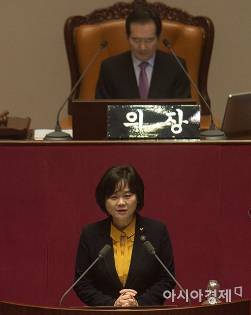 [포토]이정미 정의당 대표, 비교섭단체대표 연설