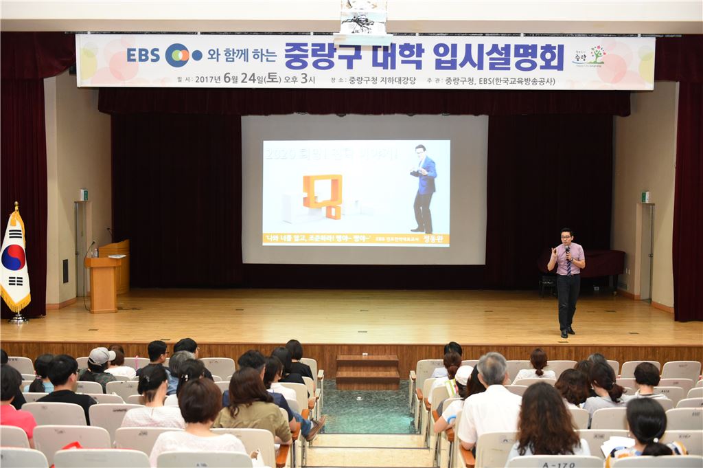 [아시아경제 박종일 기자] 중랑구(구청장 나진구)는 14일 오후 7시부터 중랑구청 대강당에서 중·고등학생과 학부모 등 500여 명을 대상으로‘EBS와 함께하는 2019, 2020학년도 대학 입시 설명회’를 연다.구는 해가 갈수록 대학 입시 수시 비중이 높아짐에 따라 지역 내 학생과 학부모의 성공적인 대입 수시 전략을 돕기 위해 이번 입시설명회를 마련했다.이날 설명회는 EBS 입시 설명회 대표 이금수 강사가 맡아 2019· 2020학년도 대학입시 이해와 합격 전략, 바람직한 학교생활기록부 관리 등 내용으로 특강을 진행할 예정이다. 입시 설명회에 앞서 연세대학교에 입학한 중랑장학생이, 학창시절 자신의 학습법 등 노하우를 알려주는 시간을 가져 더욱 유익한 자리가 될 전망이다. 구는 지역의 우수한 인재를 발굴· 육성하기 위해 지난 2008년부터 중랑장학사업을 펼쳐 총 149억원 장학기금을 조성했다. 올해도 540여명에게 5억원을 지급하는 등 2949명에게 33억4000여만 원 중랑장학금을 수여했다. 입시설명회 참여는 대학 입시에 관심 있는 학생이나 학부모 누구나 무료로 가능, 사전 신청 없이 선착순으로 500명까지 입장이 가능하다.