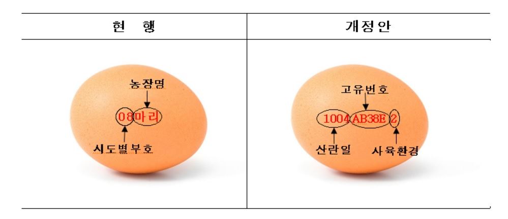 달걀 난각표시 개정 전·후 비교