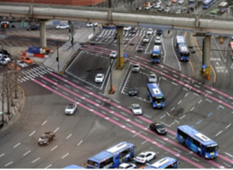 서울역 교차로에 있는 노면색깔 유도선