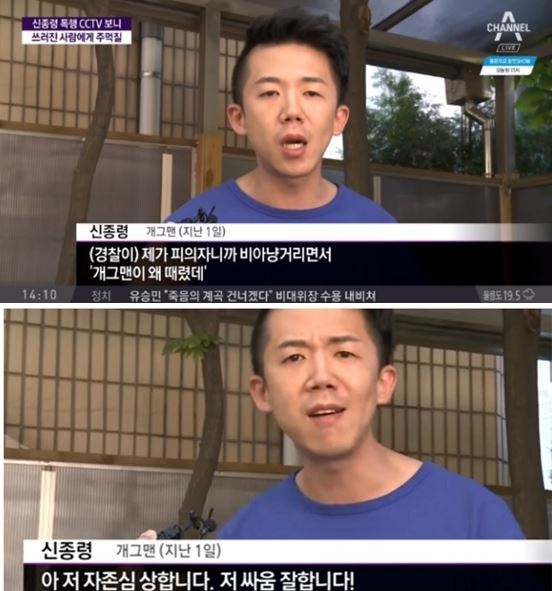 개그맨 신종령이 두번 째 폭행 혐의로 논란을 일으킨 가운데 그의 인터뷰 영상이 화제를 모으고 있다.신종령은 지난 1일 채널A '뉴스특급'을 통해 인터뷰를 진행했다. 당시는 1차 폭행 논란을 일으킨 당시 였다.그는 "연예인이 뭔데요! 왜 연예인이라고 해서 피해를 받아야 합니까? 주먹으로 때린 적 없습니다. 주먹으로 때렸다면 저 권투도 하고 해서 이빨이 나가든 어디가 깨졌을텐데 코피밖에 안났어요. 주먹으로 여섯대를 쳤는데 코피? 아 저 자존심 상합니다. 저 싸움 잘합니다!"라고 하면서 카메라를 똑바로 쳐다보고 화가 난 듯한 말투로 당시 상황을 설명했다.이어서 신종령은 "제가 피의자다보니까 비아냥거리면서 "개그맨이 왜 때렸데" 되게 계속 비아냥거리시면서 깝죽거리시면서 감히 얘기합니다. 진짜로 깝죽거리면서!"라고 말하며 분통을 터트리는 듯한 모습을 보였다.인터뷰 영상을 접한 누리꾼들은 "개콘보다 웃기다", "개그맨하더니 이런걸로 웃기네" 등 황당하다는 반응을 보이고 있다.당시 영상을 본 앵커 역시 "만취한 것 같다"고 말하며 '마약 복용'에 대한 우려 또한 나타냈다.한편 경찰은 개그맨 신종령을 상대로 마약검사까지 진행한 것으로 알려졌다.미디어이슈팀 기자 <ⓒ세계를 보는 창 경제를 보는 눈, 아시아경제(www.asiae.co.kr) 무단전재 배포금지>