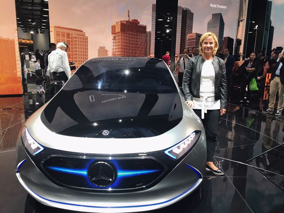 브리타 제에거 메르세데스-벤츠그룹 마케팅&세일즈 총괄이 12일(현지시간) 독일 프랑크푸르트 모터쇼 벤츠 전시장에서 기념촬영을 하고 있다