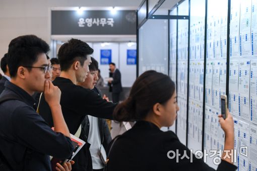 [아시아경제 강진형 기자]13일 오전 서울 중구 동대문디자인플라자에서 열린 '금융권 공동 채용박람회'를 찾은 금융업계 취업 희망 구직자들이 채용게시판을 보고 있다.강진형 기자 aymsdream@asiae.co.kr<ⓒ세계를 보는 창 경제를 보는 눈, 아시아경제(www.asiae.co.kr) 무단전재 배포금지>