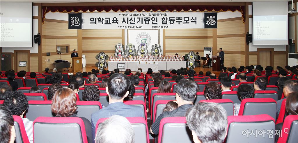 [아시아경제 노해섭 기자]의학교육을 위해 사후 시신을 기증한 고인의 숭고한 뜻을 기리는 추모행사가 전남대학교에서 열렸다.전남대학교 의과대학(학장 안규윤)과 치의학전문대학원(원장 박병주, 이하 ‘치전원’)은 13일 오후 전남대학교 의과대학 명학회관 대강당에서 녡년 의학교육 시신기증인 합동추모식’을 개최했다.전남대 의대와 치전원은 의학교육과 연구에 사용된 기증시신을 화장한 후 화순 의생명과학융합센터 내 추모관에 유분을 안치시키고 유가족과 교직원, 학생이 모여 그 숭고한 뜻을 기리는 추모식를 매년 열고 있다.올해는 모두 49명이 시신을 기증했으며, 이날 추모식에서는 고인의 유가족과 교수·학생·직원 등이 참석해 고귀한 뜻을 기렸다. 추모식은 분야별 대표자 분향에 이어 고인을 위한 묵념, 해부실습 경과보고, 추모사(의과대학장), 학생대표 인사, 유가족 감사장 수여, 헌화 등의 순서로 진행됐다. 참석자들은 추모식이 끝난 뒤 화순 의생명과학융합센터 추모관으로 이동해 고인들의 영령을 위로했다.안규윤 의과대학장은 “한 알의 밀알이 썩어 많은 알곡을 맺게 하듯 돌아가신 후 자신의 몸을 기증하는 일은 의·치의학 발전에 큰 밑거름이 되고 있다”면서 “그 숭고한 뜻을 받들어 교육과 연구에 최선을 다하겠다”고 말했다.한편, 전남대의대는 지난해 김용일(학부 6회) ·김용님(학부 17회) 동문 가족의 기증으로 화순캠퍼스 의생명과학융합센터 내에 의학교육시신 기증인 추모관을 조성한 바 있다. 노해섭 기자 nogary@<ⓒ세계를 보는 창 경제를 보는 눈, 아시아경제(www.asiae.co.kr) 무단전재 배포금지>