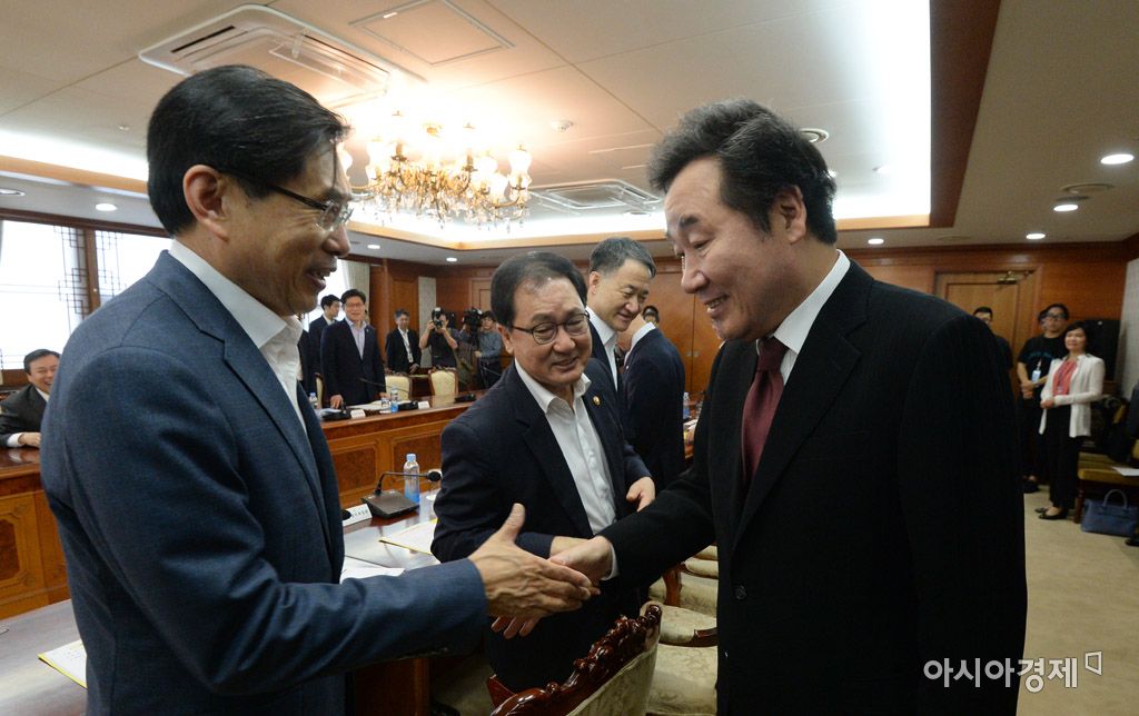 [아시아경제 문호남 기자] 이낙연 국무총리가 14일 서울 세종로 정부서울청사에서 열린 국정현안점검조정회의에 참석해 국무위원들과 악수를 나누고 있다.문호남 기자 munonam@asiae.co.kr<ⓒ세계를 보는 창 경제를 보는 눈, 아시아경제(www.asiae.co.kr) 무단전재 배포금지>