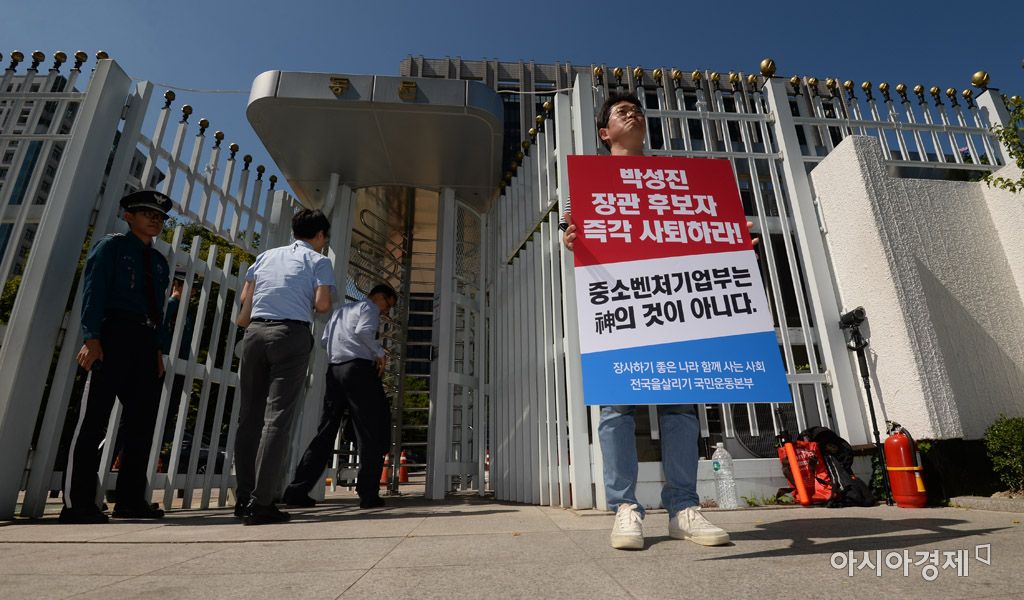 [아시아경제 문호남 기자] 전국 을살리기 국민운동본부 김동규 조직국장이 14일 서울 세종로 정부서울청사 정문 앞에서 박성진 중소벤처기업부 장관 후보자의 자진사퇴를 촉구하며 1인 시위를 하고 있다.문호남 기자 munonam@asiae.co.kr<ⓒ세계를 보는 창 경제를 보는 눈, 아시아경제(www.asiae.co.kr) 무단전재 배포금지>