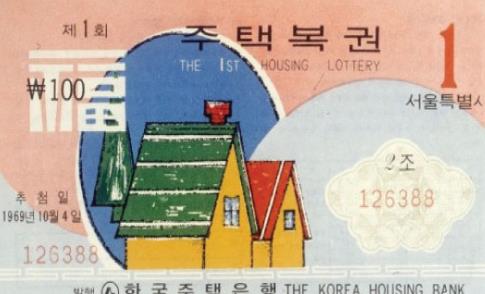 [아시아경제 김철현 기자] "준비하시고, 쏘세요" 사회자의 말에 기다리던 여성이 버튼을 누르면 화살이 과녁의 숫자에 꽂힌다. 1980년대 TV를 통해 방송되던 주택복권 추첨 장면이다. "쏘세요"라고 사회자가 외치는 순간에 복권을 손에 쥔 이들의 시선은 화살에 집중됐고 마른 침을 꿀꺽 삼켰다. 하지만 당첨되면 번듯한 집 한 채 장만하겠다는 희망은 늘 과녁을 피해가기 일쑤였다. 우리나라 최초의 정기 복권인 주택복권은 48년 전 오늘인 1969년 9월15일 처음 발행됐다. 런던 올림픽 참가경비나 이재민 구호기금, 전쟁 복구비 등을 마련하기 위해 복권이 발행된 적이 있었지만 일회성이었다. 주택복권이라고 이름이 붙여진 것은 당시 한국주택은행에서 발행하기 때문이기도 했고 발행 목적이 '군·경 유가족과 월남전 참전 장병 등 무주택 저소득층을 위한 아파트 건립 기금을 마련'이었기 때문이기도 했다. 첫 캐치프레이즈는 '도와줘서 흐뭇하고 당첨돼서 기쁘다'였다.또 1등 당첨금이면 주택을 마련할 수 있다는 기대감도 담고 있었다. 당시 주택복권 한 장 가격은 100원이었다. 100원이면 청자 담배 한 갑을 살 수 있는 돈이었다. 담 배 한 갑을 포기한 대신 노려볼 수 있는 1등 당첨금은 300만원이었다. 첫 당첨금은 청량리에서 과자가게를 하던 사람이 받았다고 한다. 당시 서울 서민주택 가격이 200만원 정도였다고 하니 집을 한 채 마련하기에 충분한 돈이었다. 국립대 수업료는 약 3만원이었으니 자식들 등록금 걱정도 한 번에 덜 수 있었다. 복권의 역사는 서민들의 꿈과 함께 영글기 시작한 셈이다. 첫 회에는 서울에서만 판매됐고 판매 기간은 보름이었다. 2회부터 판매 지역이 확대됐고 1970년대 초 주 1회로 발행 주기가 짧아졌다. 1등 당첨금은 1978년 1000만원, 1981년 3000만원, 1983년 1억원으로 올랐다. 1983년에는 1억원이면 서울 강남에서 큰 평형의 아파트를 살 수 있었다. 당첨금이 오르는 동안 TV를 통해 중계되는 추첨 방식에도 변화가 있었다. 화살을 쏘던 방식은 1979년 10월26일 박정희 대통령 시해 사건 이후 공 추첨으로 바뀌었다.마지막 주택복권 판매(사진=연합뉴스)