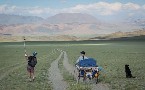 애덤 롤스턴이 몽골 초원에서 아이언 샷을 하고 있다. 사진=텔레그래프