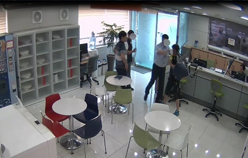 "가스누출돼 아이 죽을 뻔했다"며 난동[부산 남부경찰서 제공 영상 캡처=연합뉴스]