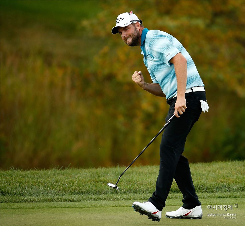 마크 레시먼이 BMW챔피언십 최종일 15번홀에서 버디를 잡아낸 뒤 환호하고 있다. 레이크포리스트(美 일리노이주)=Getty images/멀티비츠