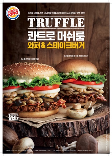[아시아경제 나주석 기자]버거킹은 가을 한정 신제품으로 ‘트러플 콰트로 머쉬룸 와퍼’와 ‘트러플 콰트로 머쉬룸 스테이크버거’를 출시했다고 18일 밝혔다.버거킹 코리아에서 자체 개발한 트러플 콰트로 머쉬룸 와퍼(단품 5900원·세트 7900원)와 트러플 콰트로 머쉬룸 스테이크버거(단품 6900원·세트 8900원)는 트러플 크림소스와 네 가지 종류의 구운 버섯을 사용했다. 트러플 오일을 사용한 트러플 콰트로 머쉬룸 와퍼는 버거킹의 대표 메뉴인 와퍼의 매력을 한 층 더 높였다. 송로버섯으로도 불리는 트러플은 세계 3대 고급 식재료 가운데 하나다. 트러플 콰트로 머쉬룸 와퍼는 직화로 구운 순쇠고기 패티에 트러플 오일을 포함한 크림소스에 새송이, 양송이, 백만송이, 포토벨로 등 4종의 구운 버섯을 더해 부드러운 맛을 자랑한다. 트러플 콰트로 머쉬룸 스테이크버거는 고소한 호밀 브리오슈 번을 사용해 풍성한 맛의 조화를 완성했다. 나주석 기자 gonggam@asiae.co.kr<ⓒ세계를 보는 창 경제를 보는 눈, 아시아경제(www.asiae.co.kr) 무단전재 배포금지>
