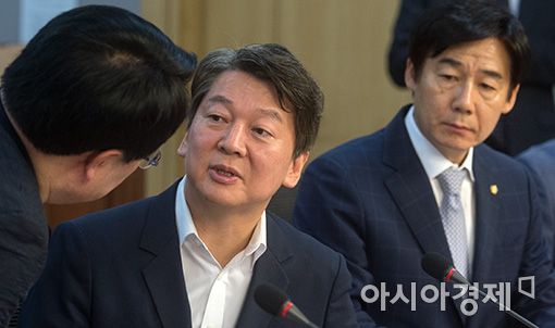 [아시아경제 윤동주 기자] 안철수 국민의당 대표가 18일 국회에서 열린 북핵 관련 최고위원-국회의원 조찬 세미나에 참석, 회의 시작 전 송기석 의원과 이야기를 나누고 있다.윤동주 기자 doso7@asiae.co.kr<ⓒ세계를 보는 창 경제를 보는 눈, 아시아경제(www.asiae.co.kr) 무단전재 배포금지>