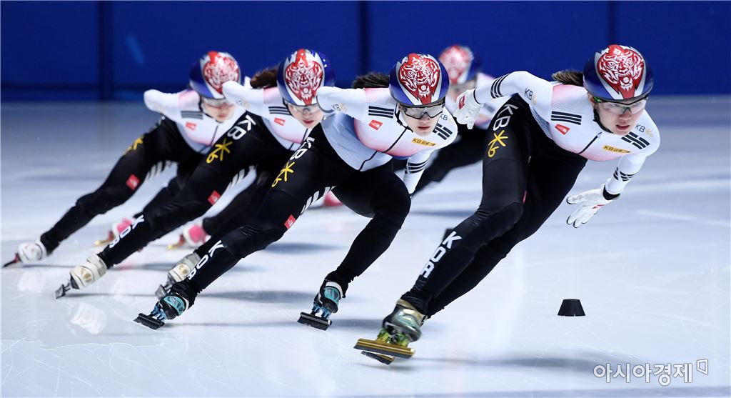 [포토]훈련하는 여자 쇼트트랙 대표팀