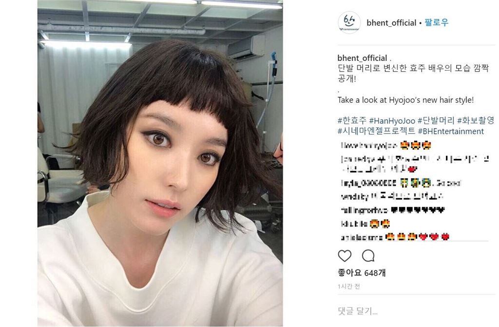 [아시아경제 고정호 기자]단발머리로 변신한 한효주의 모습이 소셜네트워크(SNS)를 통해 공개됐다.18일 한효주의 소속사인 BH엔터테인먼트의 공식 인스타그램에는 “단발 머리로 변신한 효주 배우의 모습 깜짝 공개!”라는 글과 함께 한 장의 사진이 올라왔다.공개된 사진은 한효주의 셀카로 추정되며 사진 속 한효주는 흰색 상의를 입은 채로 카메라를 응시하고 있다. 특히 사진 속 한효주는 단발머리와 함께 짙은 메이크업을 하고 있어 평소 대중에게 비치던 것과는 다른 모습을 보였다.BH엔터테인먼트 측은 게시물에 “#한효주”, “#HanHyoJoo”, “#단발머리”, “#화보촬영”, “#시네마엔젤프로젝트” 등의 해시태그를 달기도 했다.해당 사진을 접한 누리꾼들은 “변신 성공”(@mizmis****), “우리 한효주 언니가 다른 사람 같아요. 그래도 예뻐”(@joan****), “이국적으로 보여요”(@wn****)라며 한효주의 파격 변신에 놀라면서도 긍정적인 반응을 보이고 있다.한편 한효주는 영화 ‘골든슬럼버’의 개봉을 앞두고 있다.고정호 기자 jhkho2840@asiae.co.kr<ⓒ세계를 보는 창 경제를 보는 눈, 아시아경제(www.asiae.co.kr) 무단전재 배포금지>