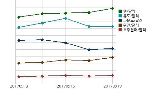 9월 19일 12시 현재 국제시장환율은 달러/유로 환율은 전일대비 0.01%(0.0002달러) 오른 1유로에 1.1948달러이고, 달러/영국 파운드 환율은 전일대비 0.30%(0.0041달러) 내린 1파운드에 1.3548달러이고, 중국 위안/달러 환율은 전일대비 0.29%(0.0196위안) 오른 1달러에 6.5700위안이고, 일본 엔/달러 환율은 전일대비 0.65%(0.7300엔) 오른 1달러에 111.5600엔이다아경봇 기자 r2@asiae.co.kr<ⓒ세계를 보는 창 경제를 보는 눈, 아시아경제(www.asiae.co.kr) 무단전재 배포금지>