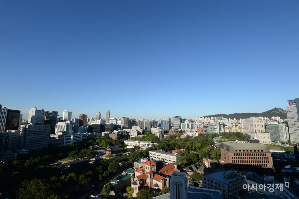[아시아경제 문호남 기자] 전국이 대체로 맑고 미세먼지 농도가 '좋음' 또는 '보통' 수준을 보인 20일 서울 중구 프레스센터에서 바라본 도심 하늘이 푸르다.문호남 기자 munonam@asiae.co.kr<ⓒ세계를 보는 창 경제를 보는 눈, 아시아경제(www.asiae.co.kr) 무단전재 배포금지>