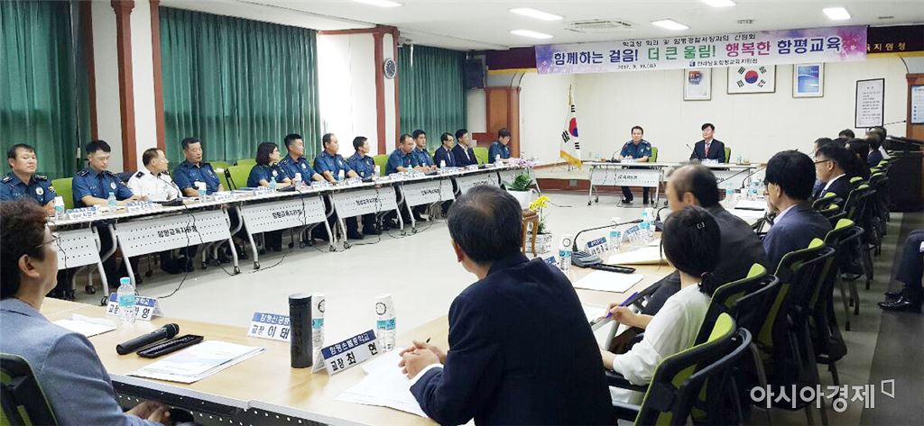 [아시아경제 노해섭 기자]함평경찰서(서장 정성일)는 19일 학교 폭력의 위험성을 인식하고 함평교육지원청과 공동으로 간담회를 개최했다. 이날 간담회에서는 함평교육지원청장 및 장학사 그리고 함평관내 초·중·고 학교장들이 참석해 ‘사회적 약자 보호 3대 치안정책’과제 중 하나인 청소년 보호를 위해 함평관내 학교폭력 실태를 점검하고 이에 대한 해법을 제시·논의하는 열린 토론의 장이 되었다. 정성일 함평경찰서장은 “함평교육지원청과 협력하여 우리지역사회에서 학교 폭력 및 청소년 범죄 예방을 위해 함평경찰이 힘쓰겠다”고 말했다.노해섭 기자 nogary@<ⓒ세계를 보는 창 경제를 보는 눈, 아시아경제(www.asiae.co.kr) 무단전재 배포금지>