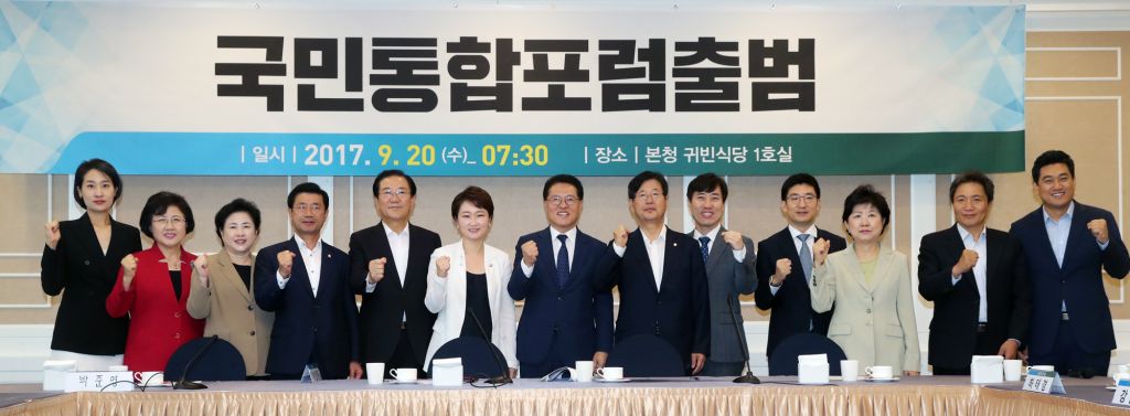 [아시아경제 유제훈 기자] 원내 3·4당인 국민의당과 바른정당 의원들이 '국민통합포럼'이라는 의원 모임을 출범시키며 정책 공조에 시동을 걸었다. 양당의 교집합 만들기가 향후 정책 연대, 선거 연대 등으로 발전할 수 있을지 정치권의 이목이 쏠리고 있다.국민의당·바른정당 의원 15명은 20일 오전 국회 귀빈식당에서 조찬 회동을 갖고 국민통합포럼 출범식을 개최했다. 이 자리에는 국민의당 소속 이언주·황주홍·신용현·김수민 의원 등 7명, 바른정당 소속 정운천·하태경·김세연·강길부 의원 등 8명이 참석했다.모임의 대표 격인 이 의원은 "양당 모두 패권정치와 권력의 사유화에 저항하면서 생긴 정당"이라며 "창당 이념을 되살리고 이념·지역·노사·세대갈등을 극복하는 국민통합을 위한 활동을 해 나가자는 취지에서 모였다"고 설명했다.모임을 주도한 이·정 의원 측에 따르면 국민통합포럼에는 국민의당 소속 의원 15명, 바른정당 소속 의원 9명이 이름을 올렸다. 국민통합포럼은 향후 매주 수요일 회동을 갖고 정책, 법안 공조 등을 논의한다는 계획이다.이 때문에 일각에서는 국민통합포럼이 향후 양당 간 정책 연대, 선거 연대로 발전할 수 있다는 전망을 내놓기도 한다. 실제 하 의원은 이날 "중도진영에서 정치 혁신을 위해 노력하는 국민의당, 보수진영의 혁신을 위해 '고난의 행군'을 겪고 있는 바른정당 의원들이 모인 것은 정치사(史)적으로 큰 의미가 있다"며 "정치 혁신과 패권 청산을 향한 어려운 길을 (양당이) 굳게 손잡고 다음 대통령 선거까지 같이 가서 정치판에 큰 변화를 이뤘으면 좋겠다"고 강조했다.다만 양당은 본격적인 연대에 대해서는 선을 긋고 있다. 이 의원은 출범식 직후 취재진과 만나 "정치 공학적 선거 연대 등은 직접 연결시킬 만한 것은 아니다"라고 말을 아꼈다. 안철수 국민의당 대표와 가까운 신 의원도 기자와 만나 "안 대표와는 특별한 얘기가 없었다"며 "큰 의미를 두기보다는, 양당 간 비슷한 정책들이 많은 만큼 공부 모임을 만들어 보면 좋겠다는 의견들이 많았는데 그 일환이라고 봐야 한다"고 설명했다.한편 바른정당은 최근 자유한국당과도 '열린 토론, 미래', '포용과 도전' 등의 의원모임을 통해 접점을 늘리고 있다. 한 정치권 관계자는 "내우외환을 겪는 바른정당으로서는 접점을 늘리면서 활로를 찾고 있는 것"이라며 "향후 이런 모임들이 정계개편의 출발점이 될 수도 있을 것"이라고 밝혔다.
