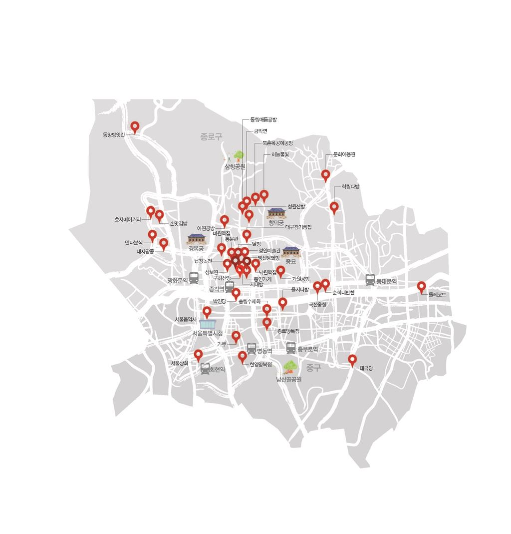 서울 종로·을지로 일대의 '오래가게' 지도 (사진=서울시 제공)