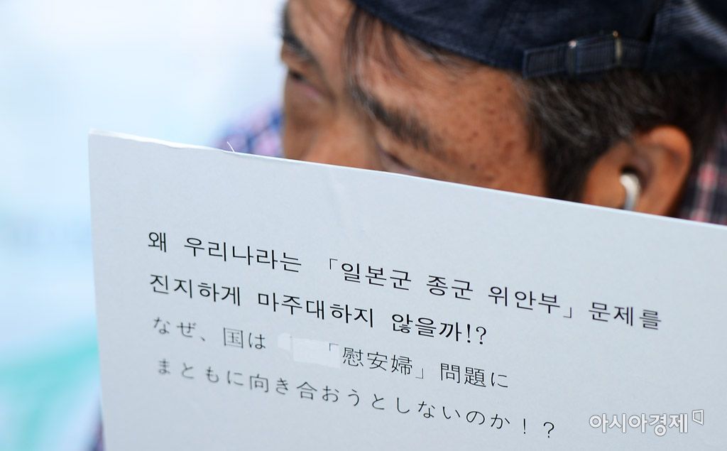 [아시아경제 문호남 기자] 20일 서울 종로구 옛 일본대사관 앞 평화로에서 열린 제1301차 일본군 성노예제 문제해결을 위한 정기 수요시위에서 한 일본인 참가자가 '왜 우리나라는 일본군 종군 위안부 문제를 진지하게 마주하지 않을까?'란 문구의 손팻말을 들고 있다.문호남 기자 munonam@asiae.co.kr<ⓒ세계를 보는 창 경제를 보는 눈, 아시아경제(www.asiae.co.kr) 무단전재 배포금지>