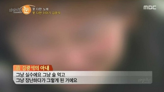 [아시아경제 온라인이슈팀]고 김광석 씨의 딸 서연 씨 죽음 의혹 중심에 있는 김광석의 부인 서해순 씨가 과거 한 방송에 출연한 한 장면이 다시 관심을 끌고 있다.서해순 씨는 과거 MBC '리얼스토리 눈‘에 출연했다. 이 방송에 따르면 서 씨는 김광석의 사망과 관련해 경찰에 새벽 3시경 인기척이 없어 나가보니 남편이 숨져있었다고 경찰에 진술했다. 또 방송에서는 “그건 실수에요 그냥 장난하다가 그렇게 된 거예요 말했다. 이런 가운데 이상호 기자가 연출한 영화 '김광석'에서 서해순은 전 남편과 사이에서 낳은 영아를 살해했다는 민감한 내용이 담긴 것으로 알려져 충격을 자아내고 있다. 이 기자는 지난달 3일 서울 용산구 CGV용산아이파크몰에서 열린 영화 '김광석' 시사회 후 간담회를 통해 "확인된 바로는 경기도 모처 병원에서 (서해순이) 생후 9개월 된 아이를 출산해 사망케 했다는 증거가 있다"고 강조했다.한편 이 같은 사실이 알려지자 네티즌들은 ‘김광석 법 국민청원’을 이용해 사건의 진상을 규명하라는 목소리를 내고 있다. <center><div class="slide_frame"><input type="hidden" id="slideIframeId" value="2017092014114362990A">