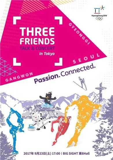 경기도와 서울시 강원도가 손잡고 일본에서 개최하는 '쓰리프랜드 토크 앤 콘서트' 행사 포스터