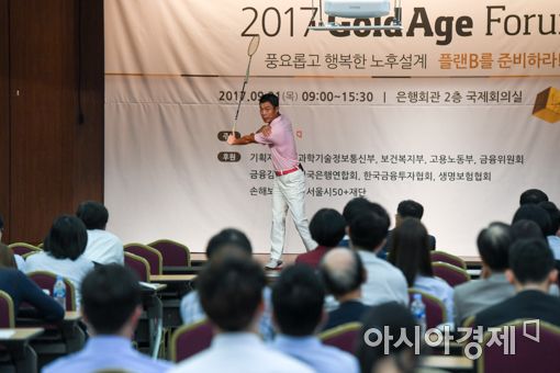 [아시아경제 강진형 기자]김용준 프로가 21일 오후 서울 중구 은행연합회관에서 아시아경제 주최로 열린 '2017 골든에이지포럼'에서 시니어 골퍼를 위한 골프레슨 '우이독경'이 란 주제로 강연하고 있다.강진형 기자 aymsdream@asiae.co.kr<ⓒ세계를 보는 창 경제를 보는 눈, 아시아경제(www.asiae.co.kr) 무단전재 배포금지>