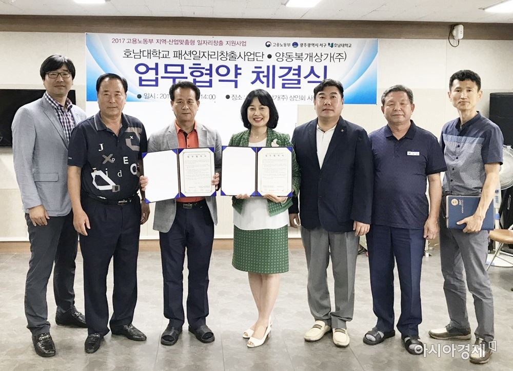 [아시아경제 노해섭 기자]호남대학교 의상디자인학과(학과장 김지연)는 19일 재래시장 패션소상공인 패션 및 CS관련 재교육을 위해 양동복개상가(주)(대표 나은상)와 업무협약을 체결했다. 이번 협약을 통해 양 기관은 2017 고용노동부 지역산업맞춤형 일자리창출사업을 통한 교육생 취창업 멘토링 및 현장실습 제공을 비롯한 경영컨설팅, 재직자 교육 등 보다 다양한 프로그램으로 적극 협력 지원할 것을 약속했다. 김지연 학과장은 “이번 업무협약을 통해 2017 지역산업맞춤형 일자리 창출사업에 참여한 국비교육생에게는 광주 서구를 거점으로 하는 다양한 취·창업 기회를 제공 하겠다”며 “양동복개상가(주) 소상공인 패션점포 경영활성화를 위한 다양한 패션 및 CS관련 교육도 제공할 것이다”고 말했다.노해섭 기자 nogary@<ⓒ세계를 보는 창 경제를 보는 눈, 아시아경제(www.asiae.co.kr) 무단전재 배포금지>
