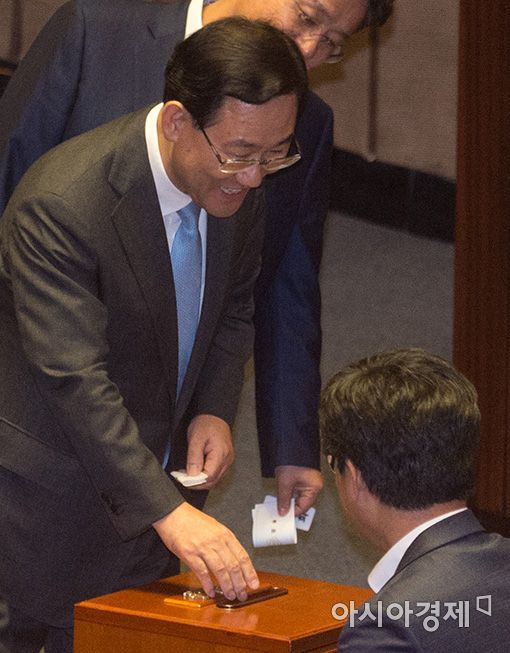 [아시아경제 윤동주 기자] 21일 김명수 대법원장 인준 표결을 위해 개회된 본회의에서 주호영 바른정당 원내대표가 투표를 하고 있다.윤동주 기자 doso7@asiae.co.kr<ⓒ세계를 보는 창 경제를 보는 눈, 아시아경제(www.asiae.co.kr) 무단전재 배포금지>