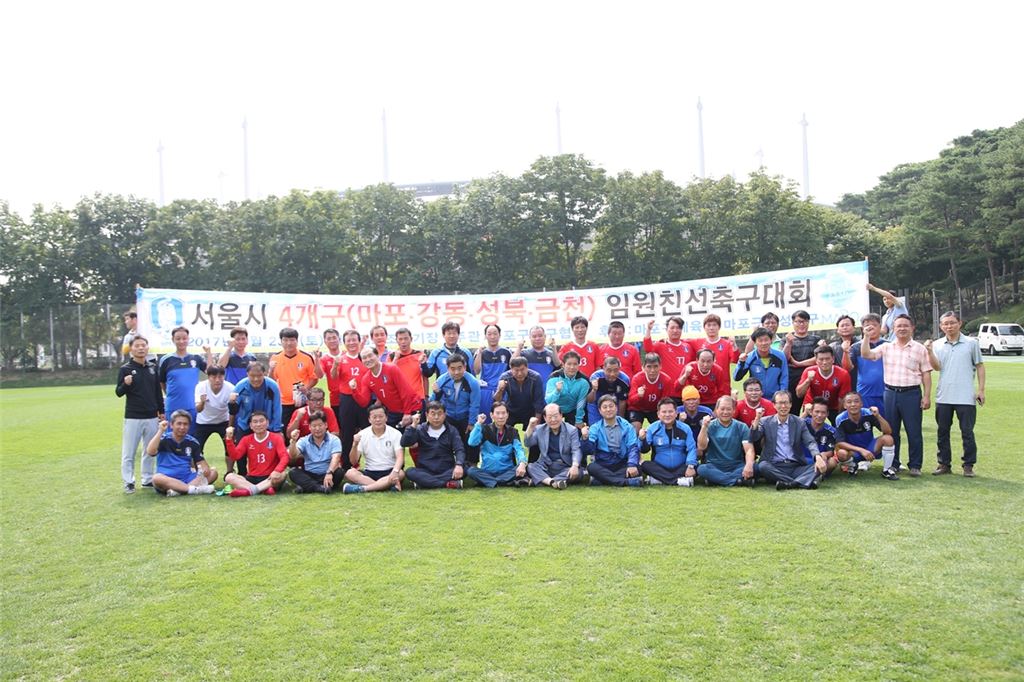 [아시아경제 박종일 기자] 마포구(구청장 박홍섭)는 23일 오전 월드컵경기장 보조구장에서 서울시 4개구 친선축구대회 행사를 개최했다.이날 행사는 마포구축구협회(회장 김인수) 주관, 마포구 후원으로 진행, 축구협회 임원 80여명이 참석했다. 박종일 기자 dream@asiae.co.kr<ⓒ세계를 보는 창 경제를 보는 눈, 아시아경제(www.asiae.co.kr) 무단전재 배포금지>