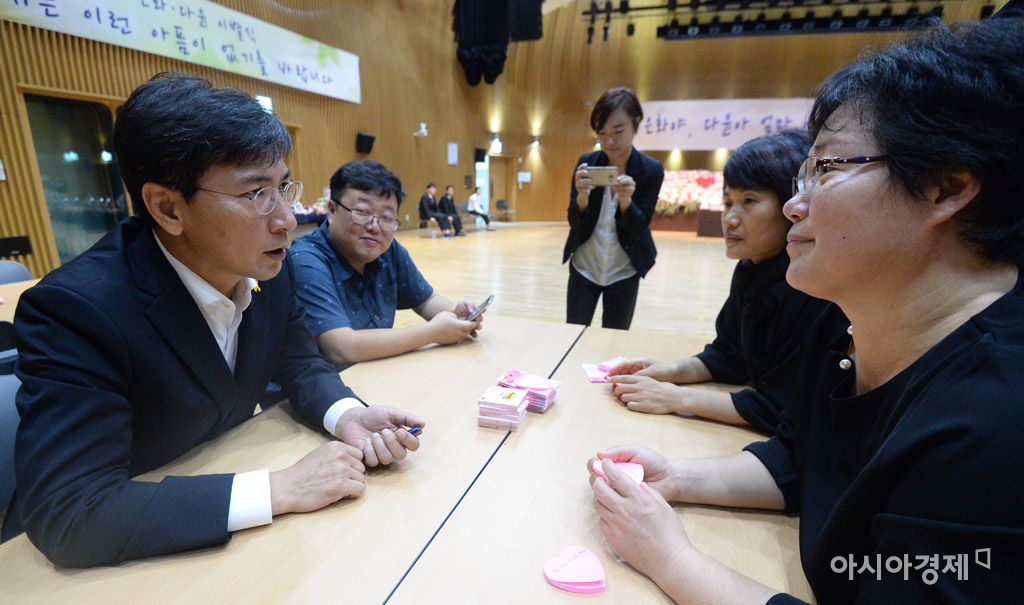 [아시아경제 문호남 기자] 안희정 충남도지사가 24일 서울 중구 서울시청 본관 다목적홀에서 열린 세월호 희생자 조은화·허다윤 양의 이별식에서 은화 어머니 이금희씨와 다윤 어머니 박은미씨와 이야기를 나누고 있다.문호남 기자 munonam@asiae.co.kr<ⓒ세계를 보는 창 경제를 보는 눈, 아시아경제(www.asiae.co.kr) 무단전재 배포금지>