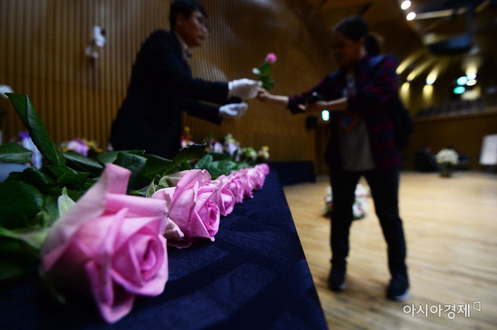 [아시아경제 문호남 기자] 24일 서울 중구 서울시청 본관 다목적홀에서 열린 세월호 희생자 조은화·허다윤 양의 이별식에 국화 대신 분홍색 장미꽃이 놓여 있다.문호남 기자 munonam@asiae.co.kr<ⓒ세계를 보는 창 경제를 보는 눈, 아시아경제(www.asiae.co.kr) 무단전재 배포금지>