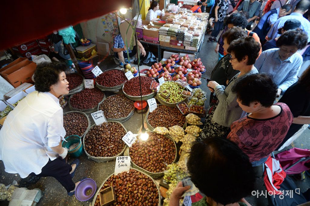 [아시아경제 문호남 기자] 추석을 열흘 앞둔 24일 서울 제기동 경동시장을 찾은 시민들이 제수용품을 구입하고 있다.문호남 기자 munonam@asiae.co.kr<ⓒ세계를 보는 창 경제를 보는 눈, 아시아경제(www.asiae.co.kr) 무단전재 배포금지>